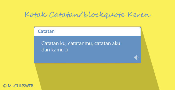 saya sangat suka dengan graphic, menurut saya sesuatu yang di warnai dengan tata letak yang bagus akan mendapatkan pemandangan yang indah dan bisa memanjakan mata. begitu juga dengan blog, setelah kamu mendapatkan template yang keren kemudian hiasilah blog tersebut dengan content-content yang bermanfaat dan berkualiatas tinggi. tidak cukup seperti itu saja teman-teman, hiasi juga dalam isi content kamu dengan pernak - pernik yang simple namun memberikan kesan yang indah, sehingga Visitor kamu betah berlama-lama di blog kamu, salah satu pernak-pernik yang saya maksud di sini adalah seperti Kotak Catatan/Blockquote yang keren seperti gambar yang kamu dilihat diatas.