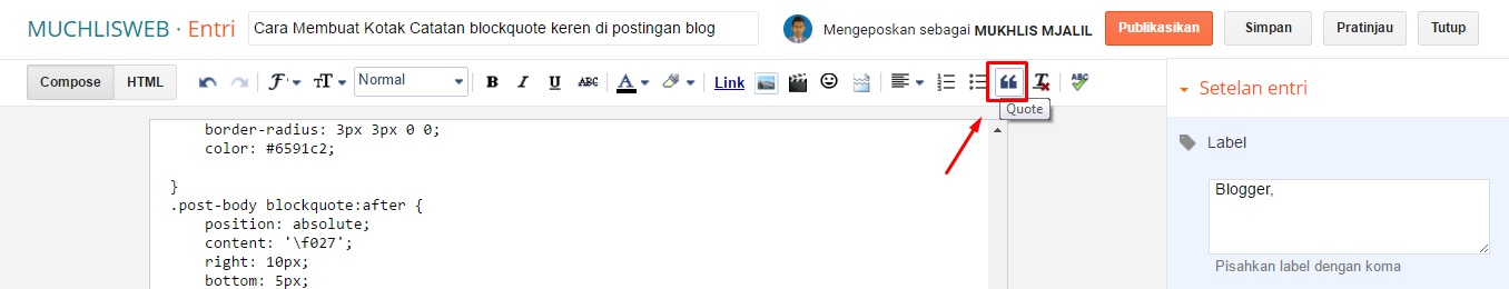CARA MEMASANG CATATAN/BLOCKQUOTE DALAM POSTINGAN