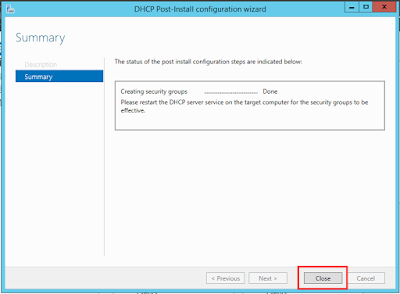 14. Jika sudah selesai buka tab icon flag yang terdapat icon warning lalu klik Complete DHCP Configuration.