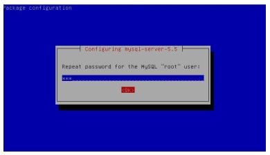 7. Setelah itu kita diminta untuk mengkonfirmasi password administrative user yang telah dibuat. masukkan password yang sama dengan password administrative user yang telah dibuat.